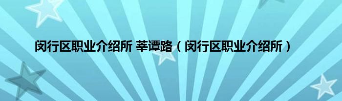 大家好,小问来为大家解答以上问题。闵行区职业介绍所 莘谭路,闵行区职业介绍所这个很多人还不知道,现在让我们一起来看看吧!