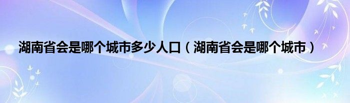 本文,湖南省会是哪个城市多少人口,湖南省会是哪个城市到此就分享完毕,希望对大家有所帮助。