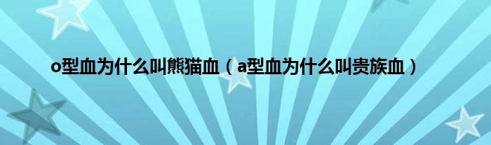 本文,o型血为什么叫熊猫血,a型血为什么叫贵族血到此就分享完毕,希望对大家有所帮助。