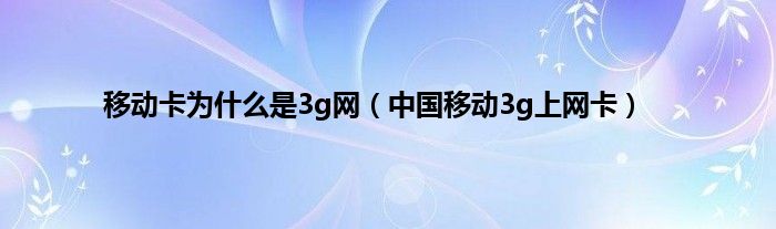 以上就是【移动卡为什么是3g网,中国移动3g上网卡】相关内容。