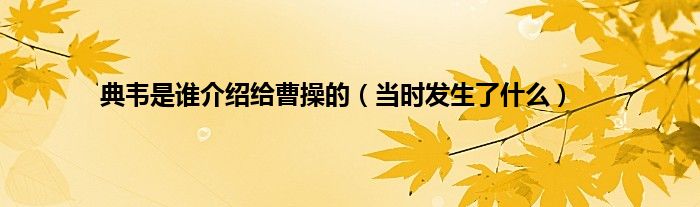 本文,典韦是谁介绍给曹操的,当时发生了什么到此就分享完毕,希望对大家有所帮助。