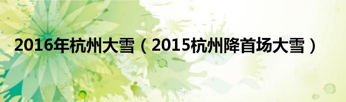 本文,2016年杭州大雪,2015杭州降首场大雪到此就分享完毕,希望对大家有所帮助。