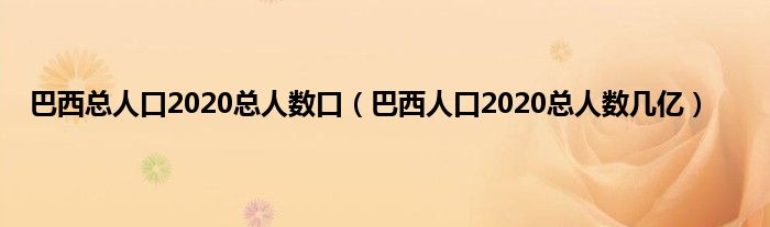大家好,巴西总人口2020总人数口,巴西人口2020总人数几亿很多人还不知道,现在让我们一起来看看吧!
