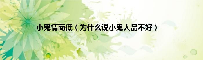 大家好,小问来为大家解答以上问题。小鬼情商低,为什么说小鬼人品不好这个很多人还不知道,现在让我们一起来看看吧!