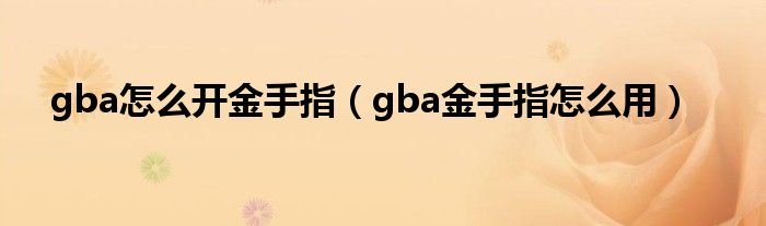 大家好,小问来为大家解答以上问题。gba怎么开金手指,gba金手指怎么用这个很多人还不知道,现在让我们一起来看看吧!