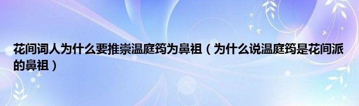 大家好,花间词人为什么要推崇温庭筠为鼻祖,为什么说温庭筠是花间派的鼻祖很多人还不知道,现在让我们一起来看看吧!