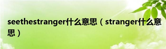 大家好,seethestranger什么意思,stranger什么意思很多人还不知道,现在让我们一起来看看吧!
