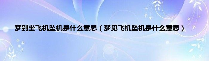 大家好,综合小编来为大家讲解下。梦到坐飞机坠机是什么意思,梦见飞机坠机是什么意思这个很多人还不知道,现在让我们一起来看看吧!
