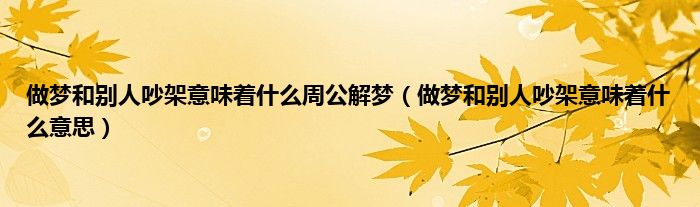 本文做梦和别人吵架意味着什么周公解梦,做梦和别人吵架意味着什么意思到此分享完毕,希望对大家有所帮助。