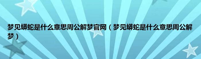大家好,综合小编来为大家讲解下。梦见蟒蛇是什么意思周公解梦官网,梦见蟒蛇是什么意思周公解梦这个很多人还不知道,现在让我们一起来看看吧!