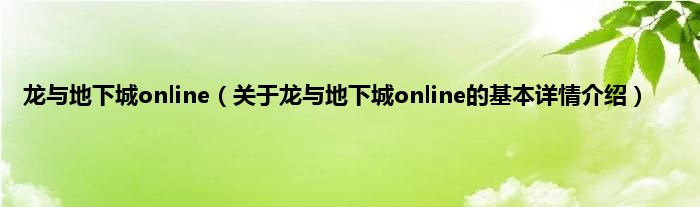 本文关于龙与地下城online的基本详情介绍就讲解完毕,希望对大家有所帮助。