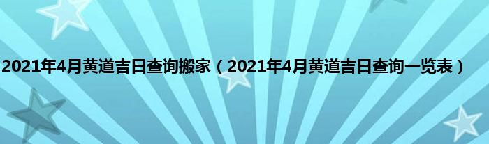 大家好,综合小编来为大家讲解下。2021年4月黄道吉日查询搬家,2021年4月黄道吉日查询一览表这个很多人还不知道,现在让我们一起来看看吧!