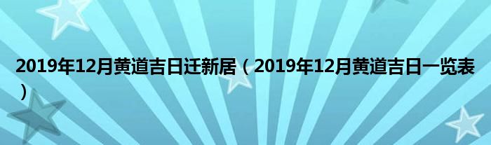 大家好,综合小编来为大家讲解下。2019年12月黄道吉日迁新居,2019年12月黄道吉日一览表这个很多人还不知道,现在让我们一起来看看吧!