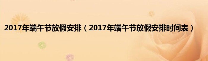 大家好,综合小编来为大家讲解下。2017年端午节放假安排,2017年端午节放假安排时间表这个很多人还不知道,现在让我们一起来看看吧!