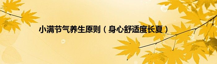 大家好,综合小编来为大家讲解下。小满节气养生原则,身心舒适度长夏这个很多人还不知道,现在让我们一起来看看吧!