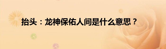 大家好,综合小编来为大家讲解下。抬头:龙神保佑人间是什么意思?这个很多人还不知道,现在让我们一起来看看吧!