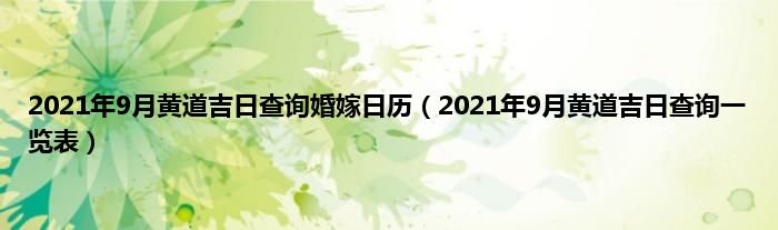 大家好,综合小编来为大家讲解下。2021年9月黄道吉日查询婚嫁日历,2021年9月黄道吉日查询一览表这个很多人还不知道,现在让我们一起来看看吧!