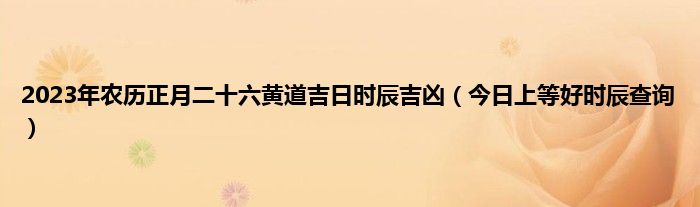 大家好,综合小编来为大家讲解下。2023年农历正月二十六黄道吉日时辰吉凶,今日上等好时辰查询这个很多人还不知道,现在让我们一起来看看吧!