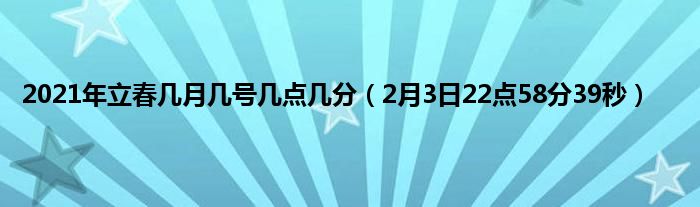 大家好,综合小编来为大家讲解下。2021年立春几月几号几点几分,2月3日22点58分39秒这个很多人还不知道,现在让我们一起来看看吧!