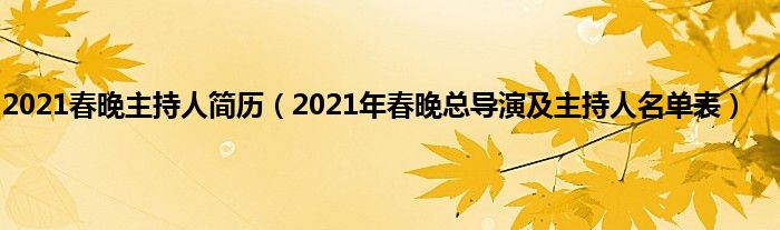 大家好,综合小编来为大家讲解下。2021春晚主持人简历,2021年春晚总导演及主持人名单表这个很多人还不知道,现在让我们一起来看看吧!