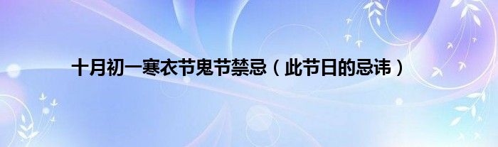 本文十月初一寒衣节鬼节禁忌,此节日的忌讳到此分享完毕,希望对大家有所帮助。