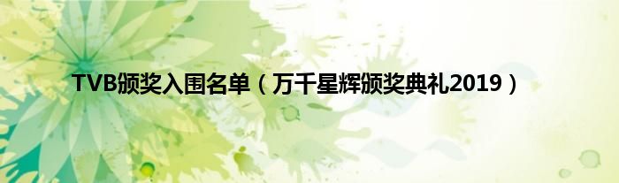 大家好,综合小编来为大家讲解下。TVB颁奖入围名单,万千星辉颁奖典礼2019这个很多人还不知道,现在让我们一起来看看吧!