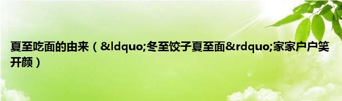 大家好,综合小编来为大家讲解下。夏至吃面的由来,“冬至饺子夏至面”家家户户笑开颜这个很多人还不知道,现在让我们一起来看看吧!