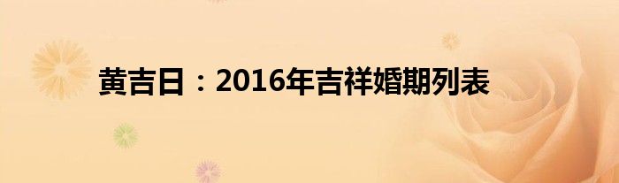 大家好,综合小编来为大家讲解下。黄吉日:2016年吉祥婚期列表这个很多人还不知道,现在让我们一起来看看吧!