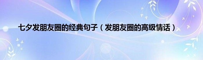 大家好,综合小编来为大家讲解下。七夕发朋友圈的经典句子,发朋友圈的高级情话这个很多人还不知道,现在让我们一起来看看吧!