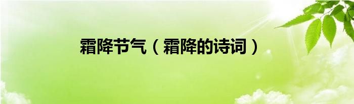 大家好,综合小编来为大家讲解下。霜降节气,霜降的诗词这个很多人还不知道,现在让我们一起来看看吧!