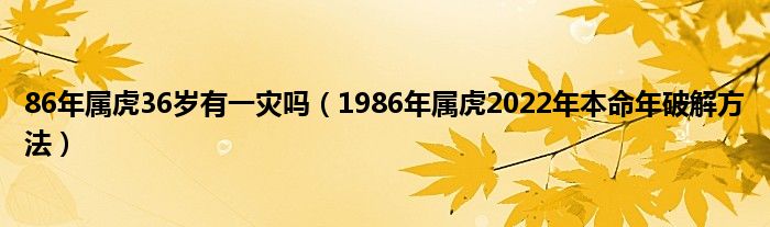 大家好,综合小编来为大家讲解下。86年属虎36岁有一灾吗,1986年属虎2022年本命年破解方法这个很多人还不知道,现在让我们一起来看看吧!