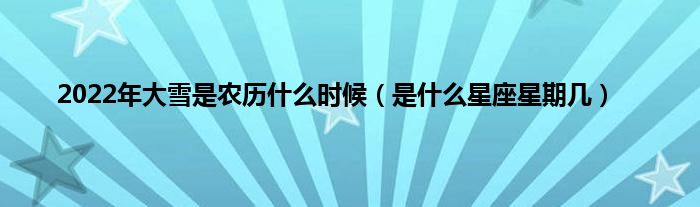 大家好,综合小编来为大家讲解下。2022年大雪是农历什么时候,是什么星座星期几这个很多人还不知道,现在让我们一起来看看吧!