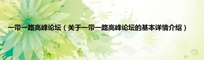 本文关于一带一路高峰论坛的基本详情介绍就讲解完毕,希望对大家有所帮助。