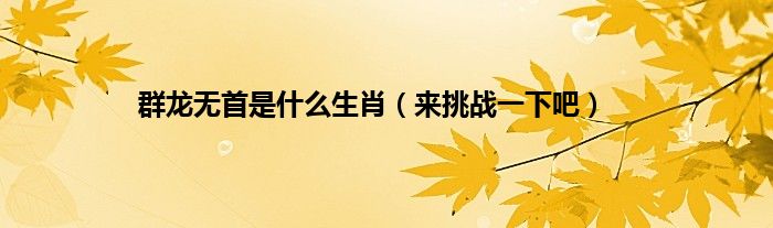 大家好,综合小编来为大家讲解下。群龙无首是什么生肖,来挑战一下吧这个很多人还不知道,现在让我们一起来看看吧!