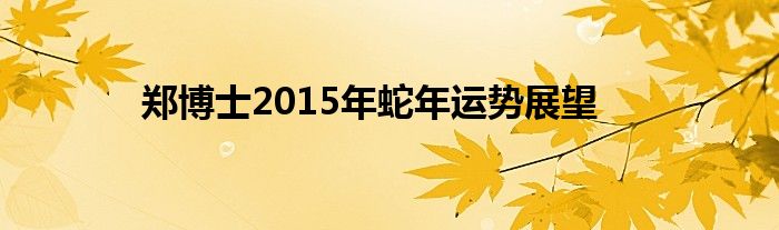 本文郑博士2015年蛇年运势展望到此分享完毕,希望对大家有所帮助。