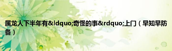 大家好,综合小编来为大家讲解下。属龙人下半年有“奇怪的事”上门,早知早防备这个很多人还不知道,现在让我们一起来看看吧!