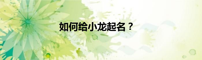 大家好,综合小编来为大家讲解下。如何给小龙起名?这个很多人还不知道,现在让我们一起来看看吧!