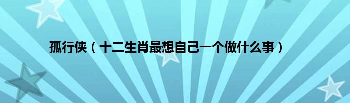 大家好,综合小编来为大家讲解下。孤行侠,十二生肖最想自己一个做什么事这个很多人还不知道,现在让我们一起来看看吧!