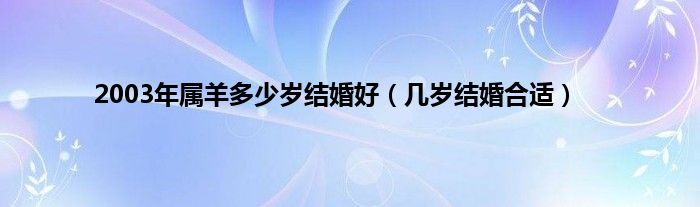 大家好,综合小编来为大家讲解下。2003年属羊多少岁结婚好,几岁结婚合适这个很多人还不知道,现在让我们一起来看看吧!