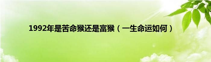 大家好,综合小编来为大家讲解下。1992年是苦命猴还是富猴,一生命运如何这个很多人还不知道,现在让我们一起来看看吧!