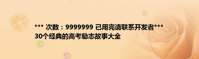 大家好,综合小编来为大家讲解下。*** 次数:9999999 已用完请联系开发者*** 30个经典的高考励志故事大全这个很多人还不知道,现在让我们一起来看看吧!