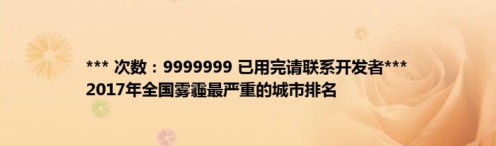 大家好,综合小编来为大家讲解下。*** 次数:9999999 已用完请联系开发者*** 2017年全国雾霾最严重的城市排名这个很多人还不知道,现在让我们一起来看看吧!