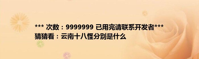大家好,综合小编来为大家讲解下。*** 次数:9999999 已用完请联系开发者*** 猜猜看:云南十八怪分别是什么这个很多人还不知道,现在让我们一起来看看吧!