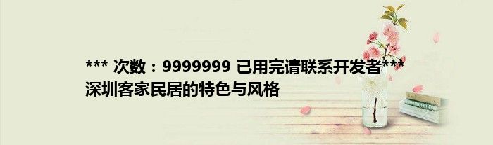 大家好,综合小编来为大家讲解下。*** 次数:9999999 已用完请联系开发者*** 深圳客家民居的特色与风格这个很多人还不知道,现在让我们一起来看看吧!