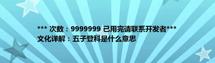 大家好,综合小编来为大家讲解下。*** 次数:9999999 已用完请联系开发者*** 文化详解:五子登科是什么意思这个很多人还不知道,现在让我们一起来看看吧!