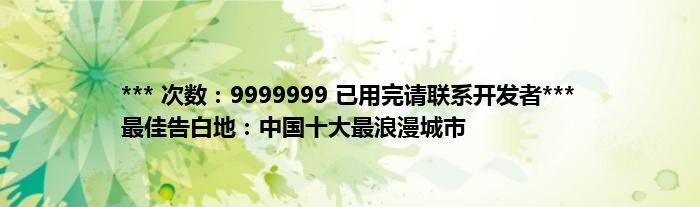 大家好,综合小编来为大家讲解下。*** 次数:9999999 已用完请联系开发者*** 最佳告白地:中国十大最浪漫城市这个很多人还不知道,现在让我们一起来看看吧!
