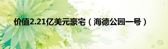 大家好,综合小编来为大家讲解下。价值2.21亿美元豪宅,海德公园一号这个很多人还不知道,现在让我们一起来看看吧!