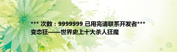 大家好,综合小编来为大家讲解下。*** 次数:9999999 已用完请联系开发者*** 变态狂——世界史上十大杀人狂魔这个很多人还不知道,现在让我们一起来看看吧!
