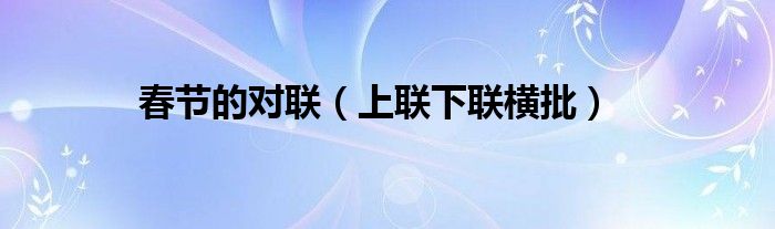 大家好,综合小编来为大家讲解下。春节的对联,上联下联横批这个很多人还不知道,现在让我们一起来看看吧!