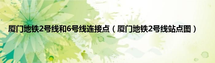 大家好,综合小编来为大家讲解下。厦门地铁2号线和6号线连接点,厦门地铁2号线站点图这个很多人还不知道,现在让我们一起来看看吧!